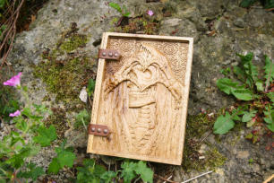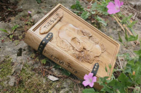 Calvaria Small size box made from oak or walnut. Featuring leather hinges and a lining of your choice.
